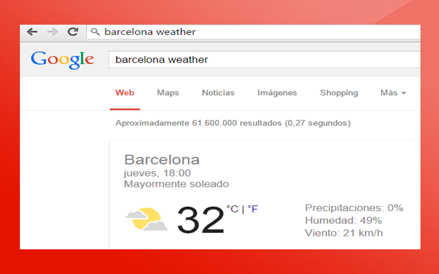 بإمكانك أيضا معرفة درجة الحرارة في أي مدينة في العالم عبر شريط المتصفح ، فقط بكتابة إسم المدينة ثم كلمة weather أمامها.